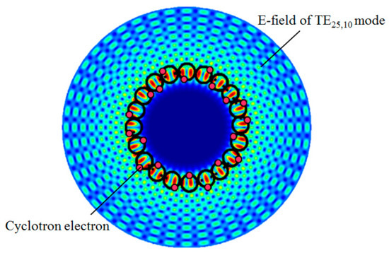 Schematic diagram of cyclotron electron beam and high-order mode interaction.
