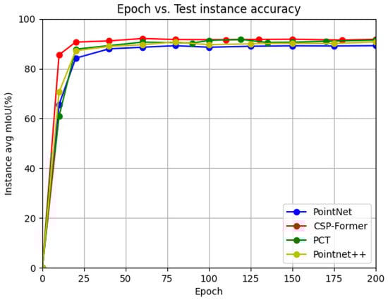 Instance accuracy evaluates the classification or segmentation accuracy of the model for each point cloud instance (i.e., the entire object or scene). Specifically, instance accuracy measures whether the model correctly predicts the category of the point cloud at the overall sample level, rather than focusing on whether the classification or segmentation of a single point is correct.