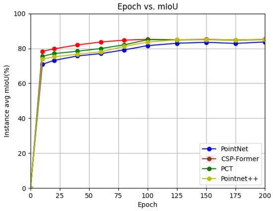 The mIoU evaluates the overlap degree between the model’s segmentation results for each category and the actual annotations. It evaluates the model’s performance on different object categories and determines which categories are accurately segmented.
