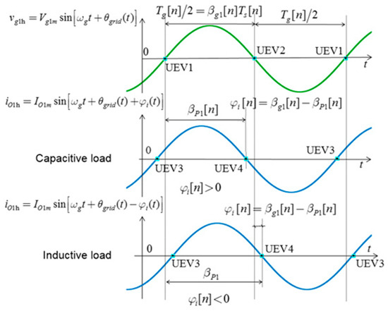 Two cases of the phase angle between the grid voltage first harmonic and the voltage generated by the PLL for (a) > 0 and (b) < 0 can be illustrated in the same way as in Figure 7.