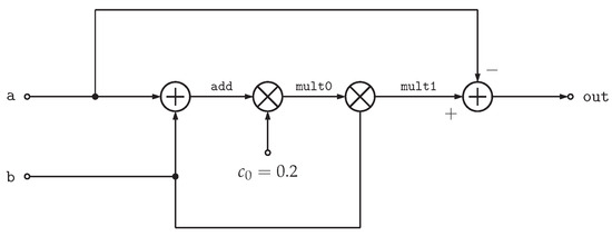 Figure 3 shows an addition/subtraction operation. Here, a and b are inputs to the node and are given by Equations (24) and (25), respectively.