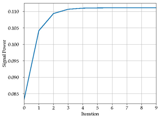 Convergence of signal power at the IIR filter output.