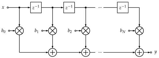 - Chan, D.; Rabiner, L. Analysis of quantization errors in the direct form for finite impulse response digital filters. IEEE Trans. Audio Electroacoust. 1973, 21, 354–366. [Google Scholar] [CrossRef]