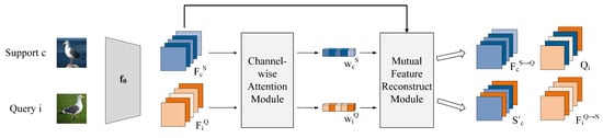 Consequently, we propose a channel-wise attention-enhanced feature mutual reconstruction approach for few-shot fine-grained image classification. We treat feature reconstruction as a ridge regression problem and achieve the best reconstruction using the least square method. Besides the support–query feature reconstruction, we additionally adopt a reverse query–support reconstruction strategy, which aims to reduce the differences between same-class images. This strategy compresses the intra-class differences, encouraging the model to learn more consistent and compact representations for similar instances. The support–query feature reconstruction improves the separability between classes, while the reverse query–support reconstruction focuses on reducing discrepancies within the same class.