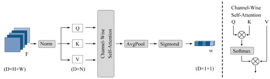 The input features of the channel-wise attention module are denoted as F. We normalize F in the channel dimension, and obtain the Q, K, and V through a convolution kernel.