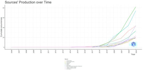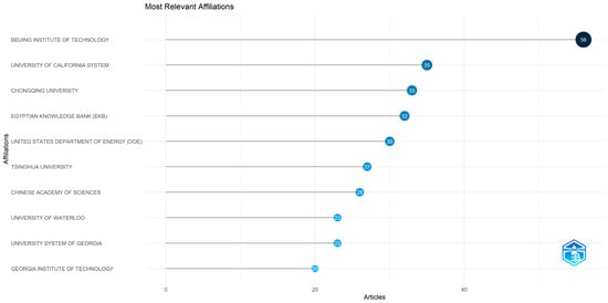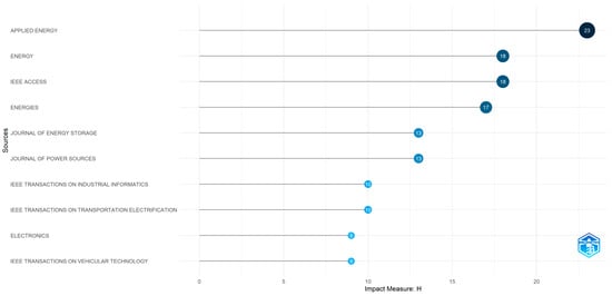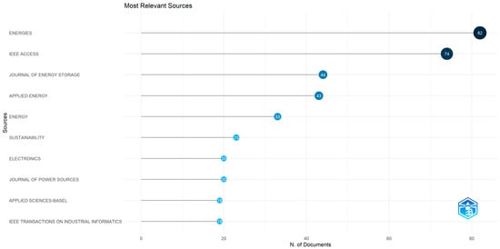 - The most important journals, in terms of the number of publications that had a significant contribution to the EV, AI, ML and DL domains are as follows: Energies (82 publications), IEEE Access (74 publications), Journal of Energy Storage (44 publications), Applied Sciences (43 publications), Energy (33 publications), Sustainability (23 publications), Electronics (20 publications), Journal of Power Sources (20 publications), Applied Sciences-Basel (19 publications), and IEEE Transactions on Industrial Informatics (19 publications).