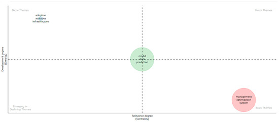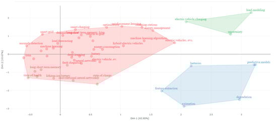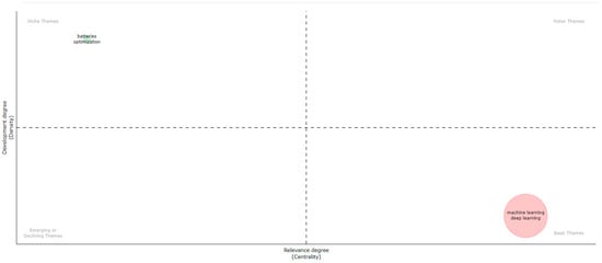 - The EV, ML, AI, and DL domains were analyzed using thematic maps, which extracted the main topics from Keywords Plus and authors’ keywords, obtaining information related to energy management, optimization, infrastructure, policy, lithium-ion batteries, design, strategy, regression, and neural networks.