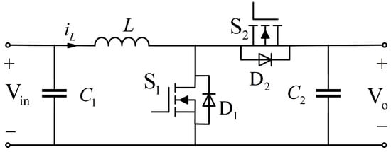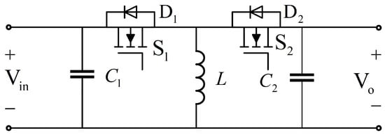 The bidirectional buck/boost converter [12,13] is constructed based on the unidirectional buck or boost converter, meaning that the diode and the power tube are in reverse parallel at both ends of the original power tube and diode, and its topology is shown in Figure 5. The bidirectional buck/boost converter has the advantages of simple topology and control strategy, fewer required devices, and high conversion efficiency. However, due to the inherent structure of the converter, the input and output voltage conversion ratio is relatively small, so it is only suitable for low-power applications without electrical isolation.