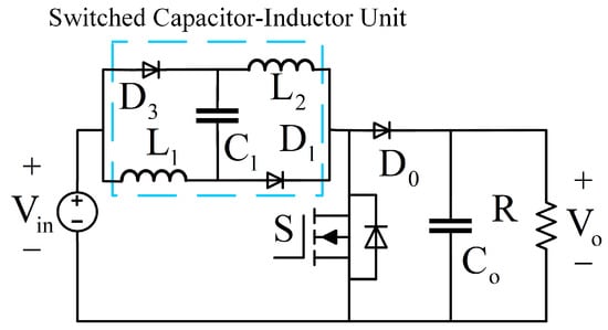 The so-called boost unit involves combining the capacitor or inductance element with the function of energy storage and energy release and the diode or switching tube, through the one-way conductivity of the diode or control the working state of the switching tube (on/off), changing the energy flow mode of the converter, and building a switching capacitor [27,28] or switching inductance module with the voltage boost function. According to the types of components included, the boost unit can be divided into the switching capacitance unit, switching inductance unit, and switching capacitance inductance unit.