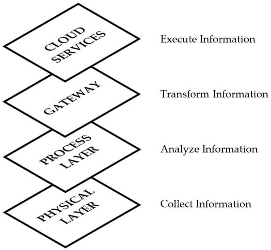As described in Figure 3, the cloud-based architecture of IoT mainly contains the physical layer, process layer, gateway layer, and cloud services [].