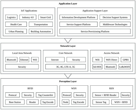 The architecture of IoT is generally conceptualized as comprising three interrelated layers, with each layer dedicated to a particular aspect of data flow and network functionality [,,]: