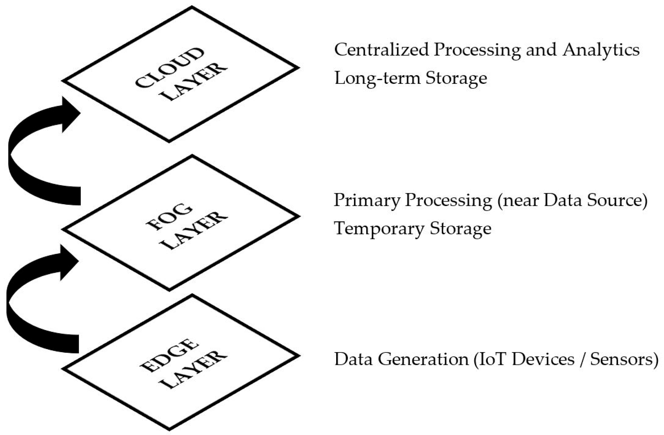 - Middleware layer: Provides data aggregation, processing, and service management. Security controls: access control, API security, secure cloud interfaces, and anomaly detection for service requests.
