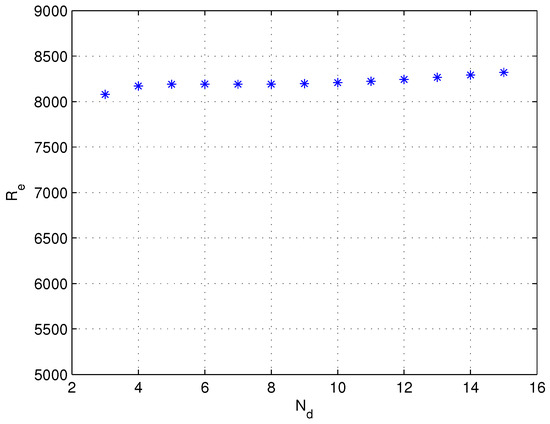 The adjusted grid unit resistance is adopted in the network for simulation, and the relationship between and is obtained, as shown in Figure 9. It can be seen that, after adjusting the grid unit resistance, when ranges from 3 to 15, the equivalent resistance remains within a relatively fixed range. Therefore, the range of is specified between 3 and 15.