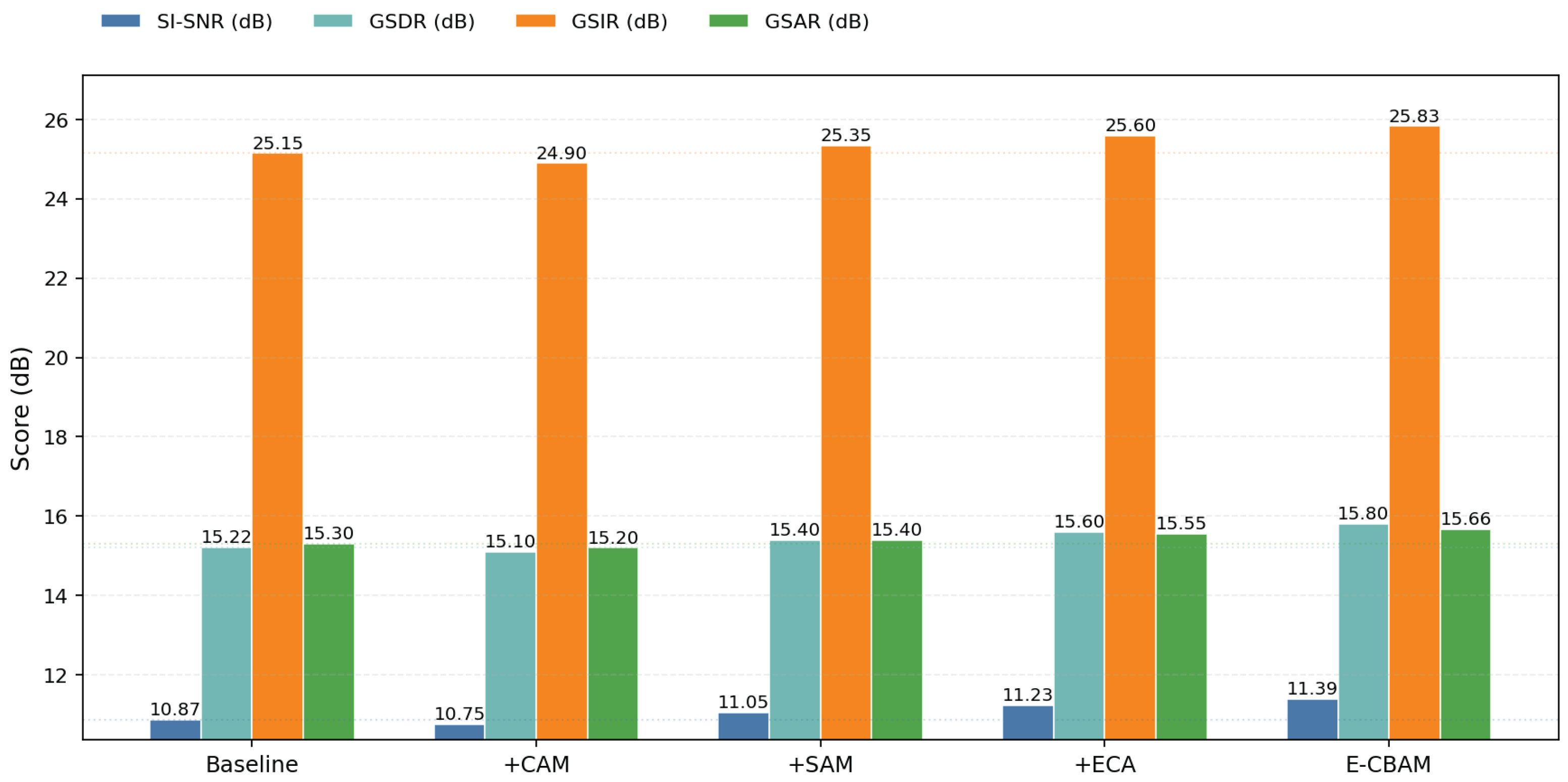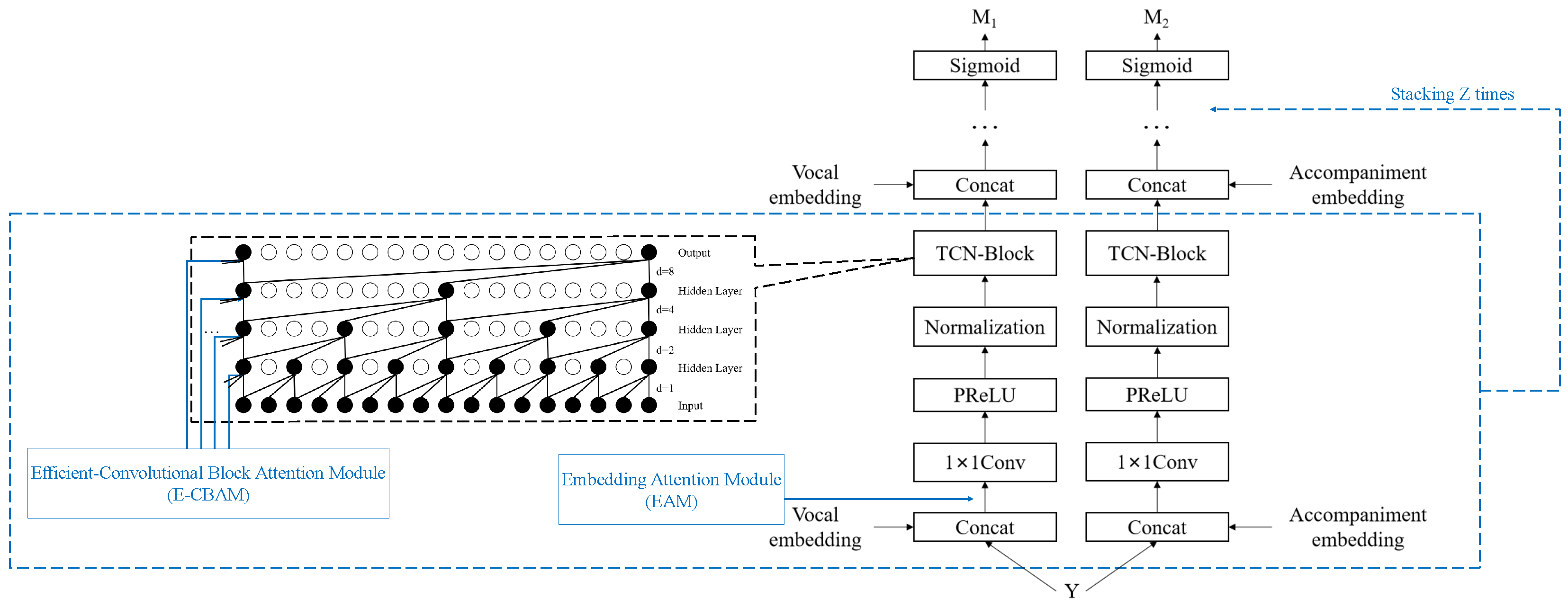 Zhao, Z.; Luo, M.; Qiao, X.; Shao, C.; Sun, R. Attention-Driven Time-Domain Convolutional Network for Source Separation of Vocal and Accompaniment. Electronics 2025, 14, 3982. https://doi.org/10.3390/electronics14203982