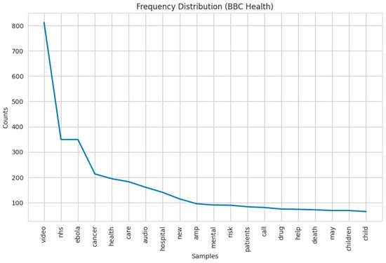 We examined the BBC dataset to identify subjects pertinent to significant healthcare matters, patient care, and potentially the NHS. Our attention was directed towards critical diagnoses and the accompanying multimedia content (see Figure 2). The collection encompasses subjects such as public health warnings, infectious diseases, mental health, and the responsibilities of healthcare professionals, particularly emphasizing children and their mental well-being. Lastly, the discussion centers on women’s health, encompassing surgeries, medical risks, and treatments, with a significant emphasis on cancer and associated medical issues. The primary themes include “nurse,” emphasizing the role of healthcare professionals, along with “vaccine,” “warning,” and “ebola,” which pertain to discussions on infectious diseases and public health crises.