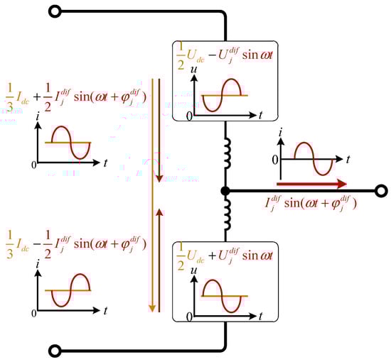 t), which is set to 0 A. In this condition, no current flows through the arm inductors, and the voltages across the inductors are equal. Consequently, the differential modulation voltage of the upper and lower arms,