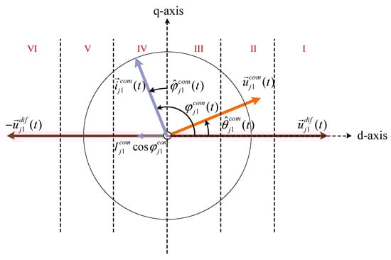 The DC common-mode voltage component (t) is denoted as , and the fundamental-frequency common-mode voltage component (t) is denoted as . These small-signal components are simultaneously superimposed onto the modulation signals of the upper and lower arms, generating corresponding small-signal common-mode currents in the arms, consisting of a DC component and a fundamental-frequency component .
