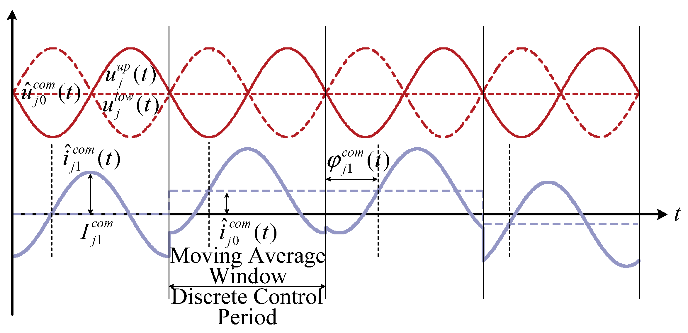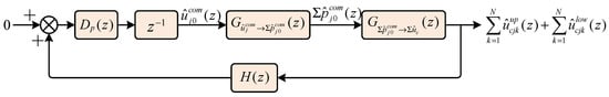 In <(t)>Ts, the power exchange process between the DC and AC sides is not affected by the common-mode voltage component. Among the remaining three terms, the dominant contribution arises from the DC component of , which is used to regulate the average capacitor voltage of phase j. Furthermore, this DC component of the common-mode current can be realized by controlling the DC component of the common-mode modulation voltage, (t), applied to the arm output voltage.