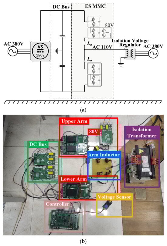 An experimental platform for a single-phase ES-MMC prototype was developed, as illustrated in