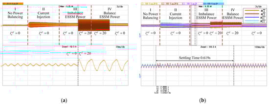 compared with the others. The settling time after introducing power imbalances is about 0.619 s. The AC grid current increases from 0 to 20 A. In Stage IV, after the additional power injection is removed, the capacitor voltages of both arms recover to balance, as the grid current amplitude decreases from 20 A to 0.