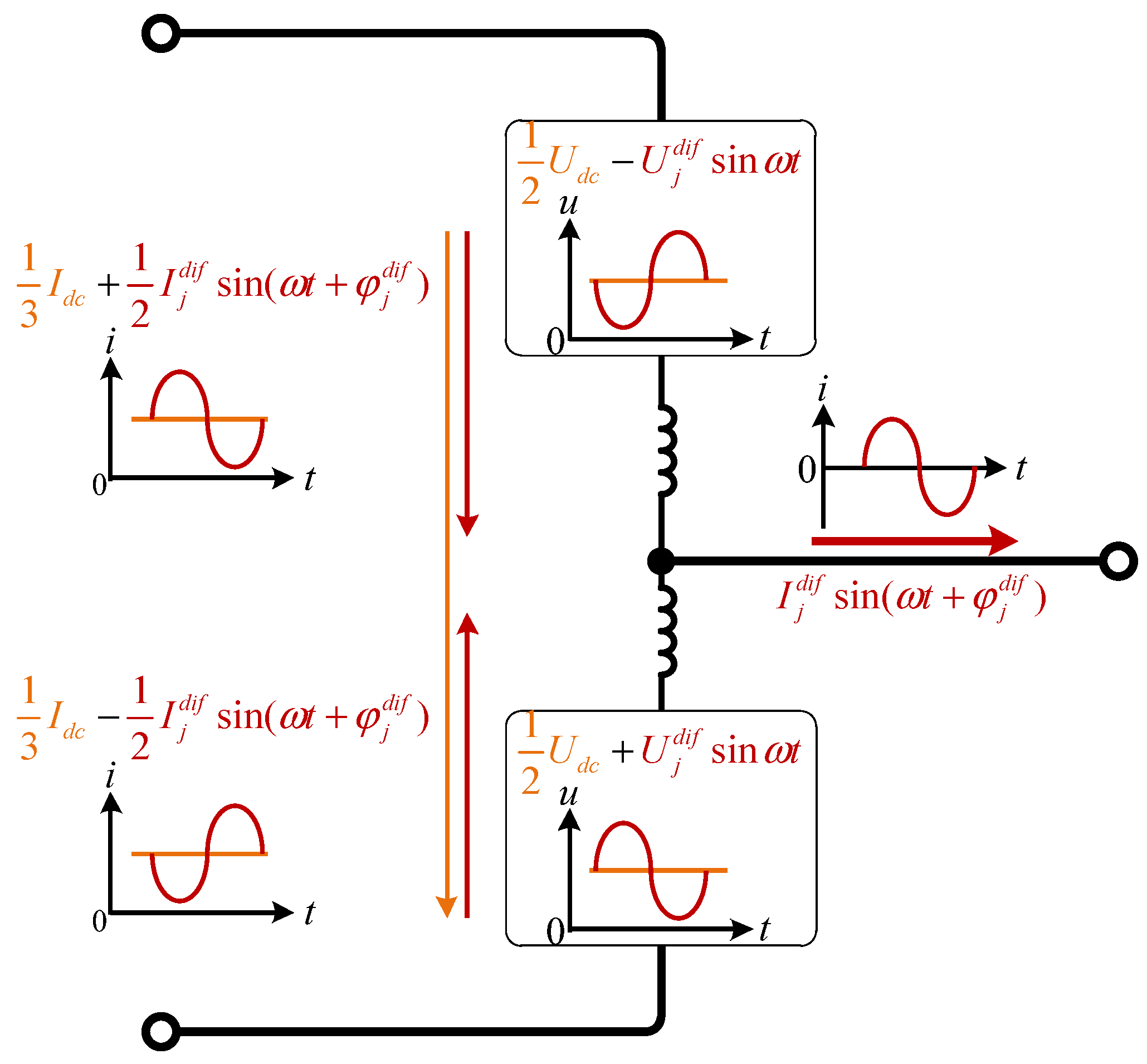 j and the voltage balance between the upper and lower arms, a DC common-mode component