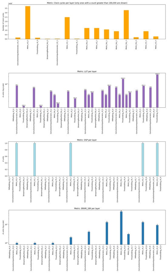 NN2FPGA [] is the most recent toolflow among those considered. Developed at Politecnico di Torino, it draws on some of FINN’s principles but relies exclusively on IP generated in Vitis HLS, foregoing SystemVerilog modules optimized at the RTL level. The literature [] reports that the use of only HLS components can lead to a smaller footprint under certain configurations, but comparisons with FINN do not consider the use of optimized RTL functions, which often provide better performance. Moreover, applications attempting the synthesis of networks on low-end boards (like Zynq-7000) with NN2FPGA appear limited or non-existent, and the networks demonstrated in [] and [] are large enough to require more spacious devices. For these reasons, and given the relative immaturity of the synthesis flow noted in the consulted literature, NN2FPGA was not deemed the ideal choice for this work.