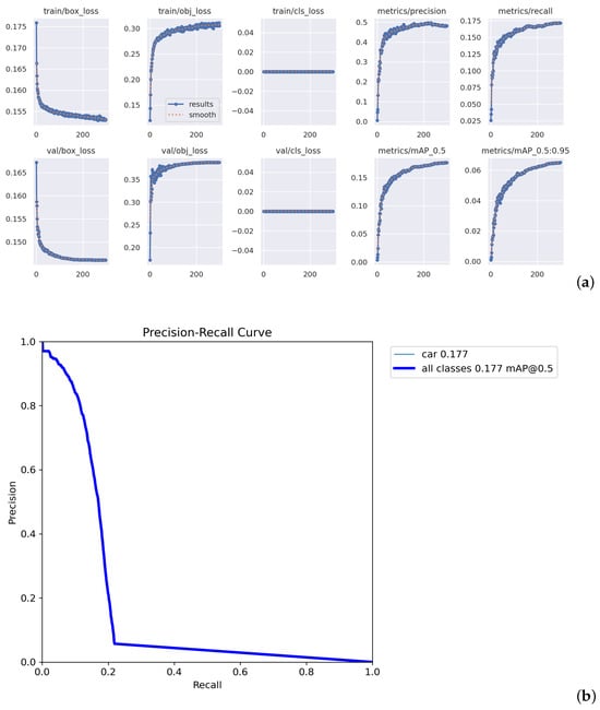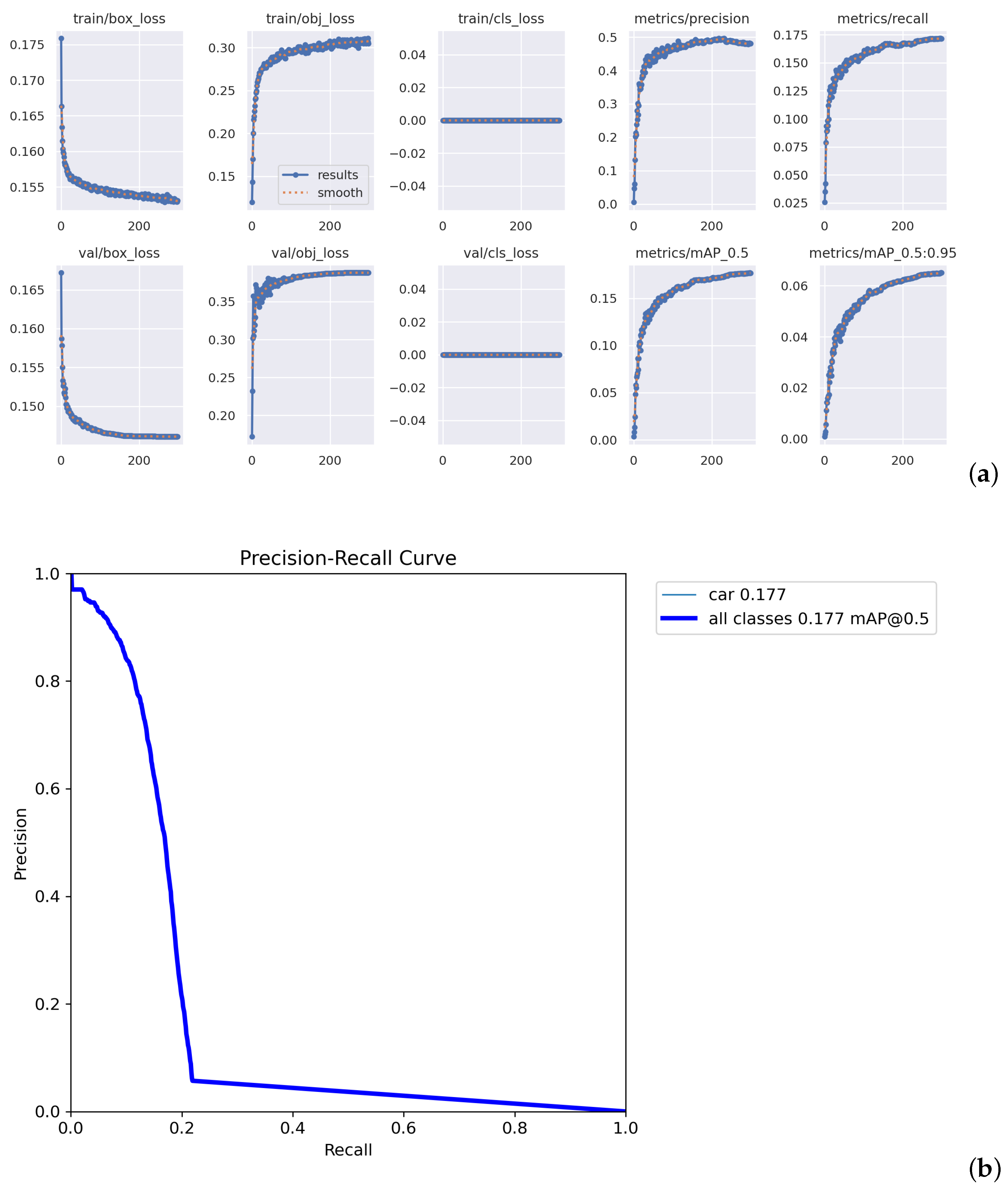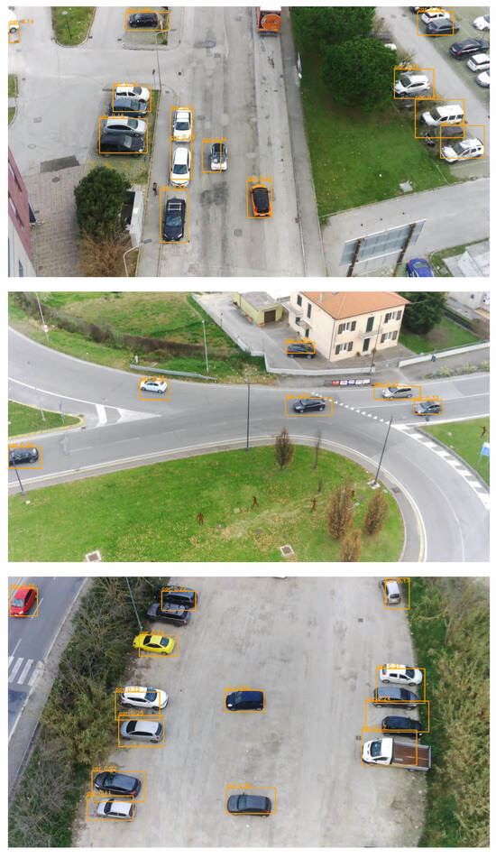 The full dataset is divided into five different tasks: for the purposes of this work, only the first one (object detection in images) was employed. In addition, only one of the 10 categories was used: car objects. Finally, since the box annotation syntax used by this dataset is not directly compatible with training a YOLO network using Ultralytics tools, a format conversion was performed to adapt it to YOLO’s box notation XYWH.