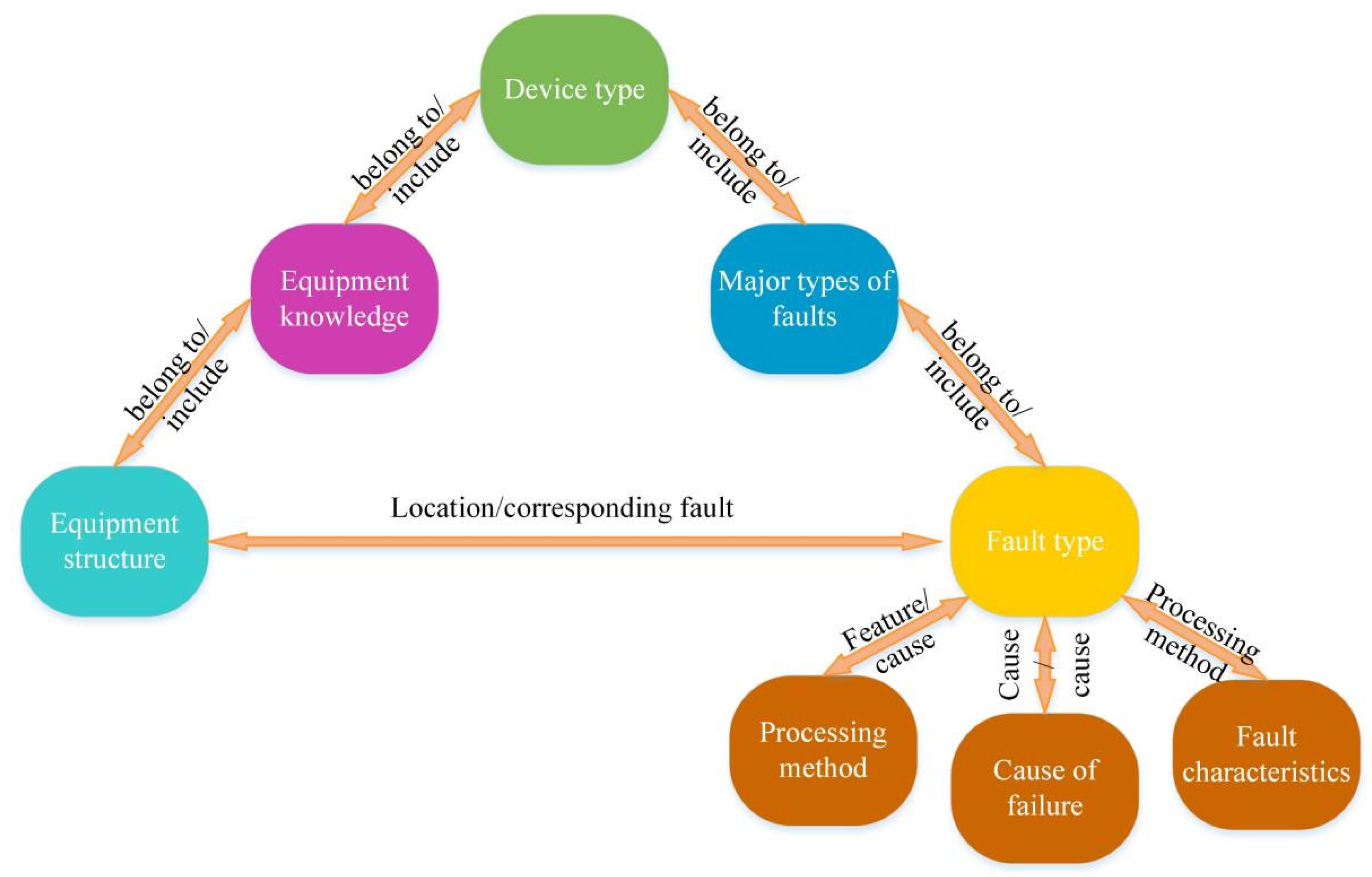23]. Knowledge-driven methods rely on expert systems and fault samples and have poor scalability. As a structured semantic knowledge base, the data layer of the knowledge graph stores knowledge information in a graph structure, naturally contains knowledge and its relationship information, and can almost cover most equipment fault types [