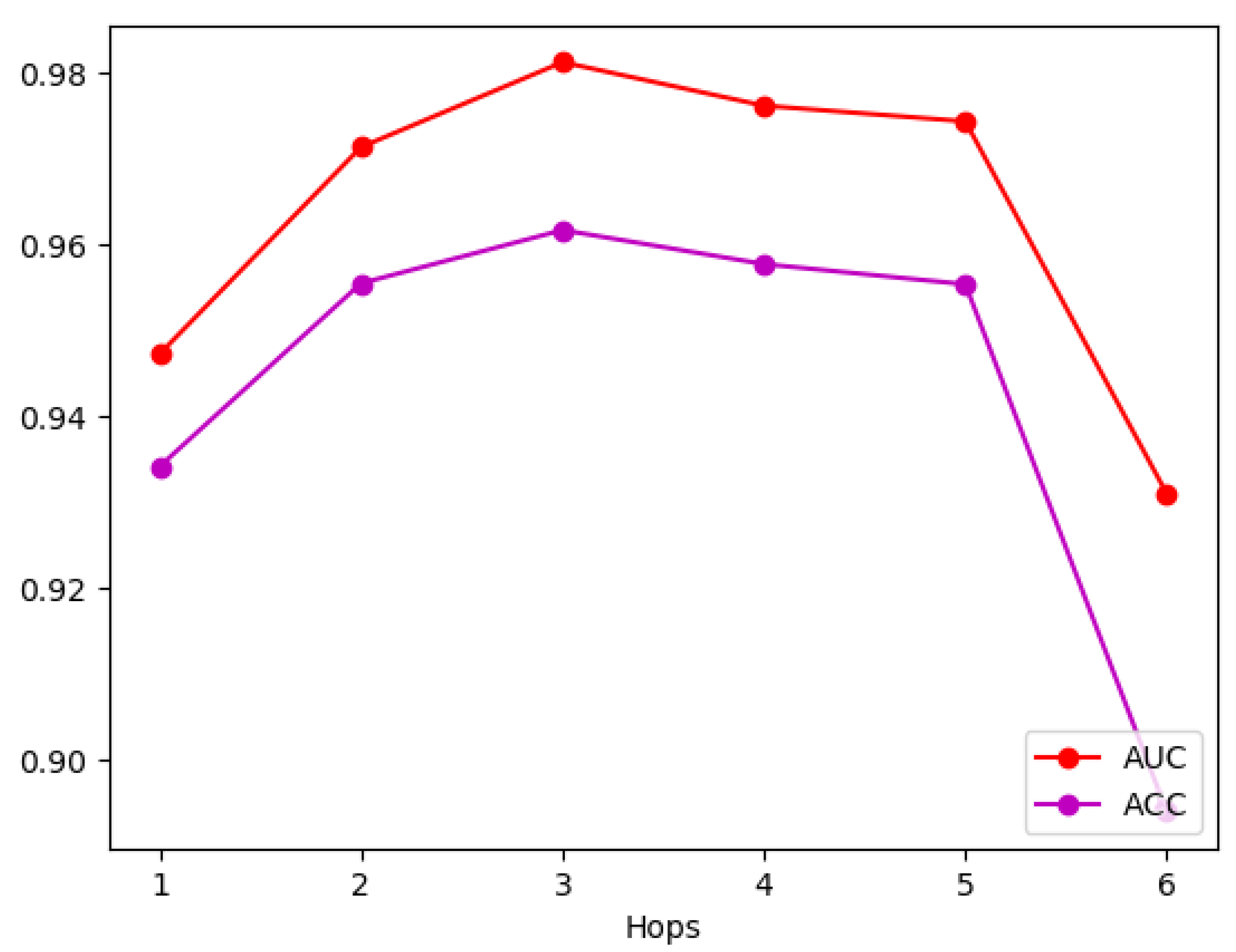 To explore the impact of Hops on the diagnostic accuracy of Ripplenet, this paper trained the network under the condition of H being 1 to 6, and other network parameters remained unchanged.