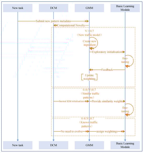 When existing components fail to meet the prediction requirements of new tasks, the DCM mechanism is triggered. Its operational flow is illustrated in Figure 4.