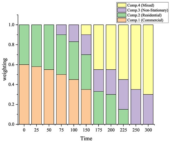- Component merging may correspond to the consolidation of functionally similar areas during network optimization or the decline of certain service patterns. When two components (e.g., patterns of two commercial areas) become similar due to urban development, merging them simplifies the model and prevents overfitting.