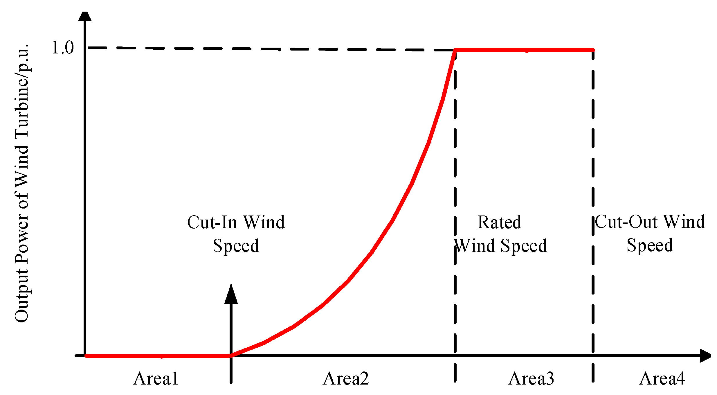 This study employs a doubly fed induction generator wind turbine for simulation. The turbine’s output power is strongly correlated with wind speed. Depending on the ambient wind speed, the DFIG operates in four regions, as shown in
