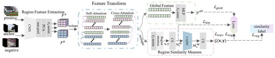 This section introduces the region-based feature similarity learning for video copyright detection. First, the module for extracting regional features of videos is discussed. The first module receives positive, negative, and anchor videos, and then obtains frame-level features through CNN, pooling, PCA and normalization. Next, linear Transformer encoder and temporal positional encoding are incorporated to better capture temporal information in video content. Then, a global spatiotemporal feature extraction is proposed based on self-attention and cross-attention. Finally, the design of similarity calculation and multiple loss functions is discussed. Figure 1 depicts the overall framework diagram of the model.