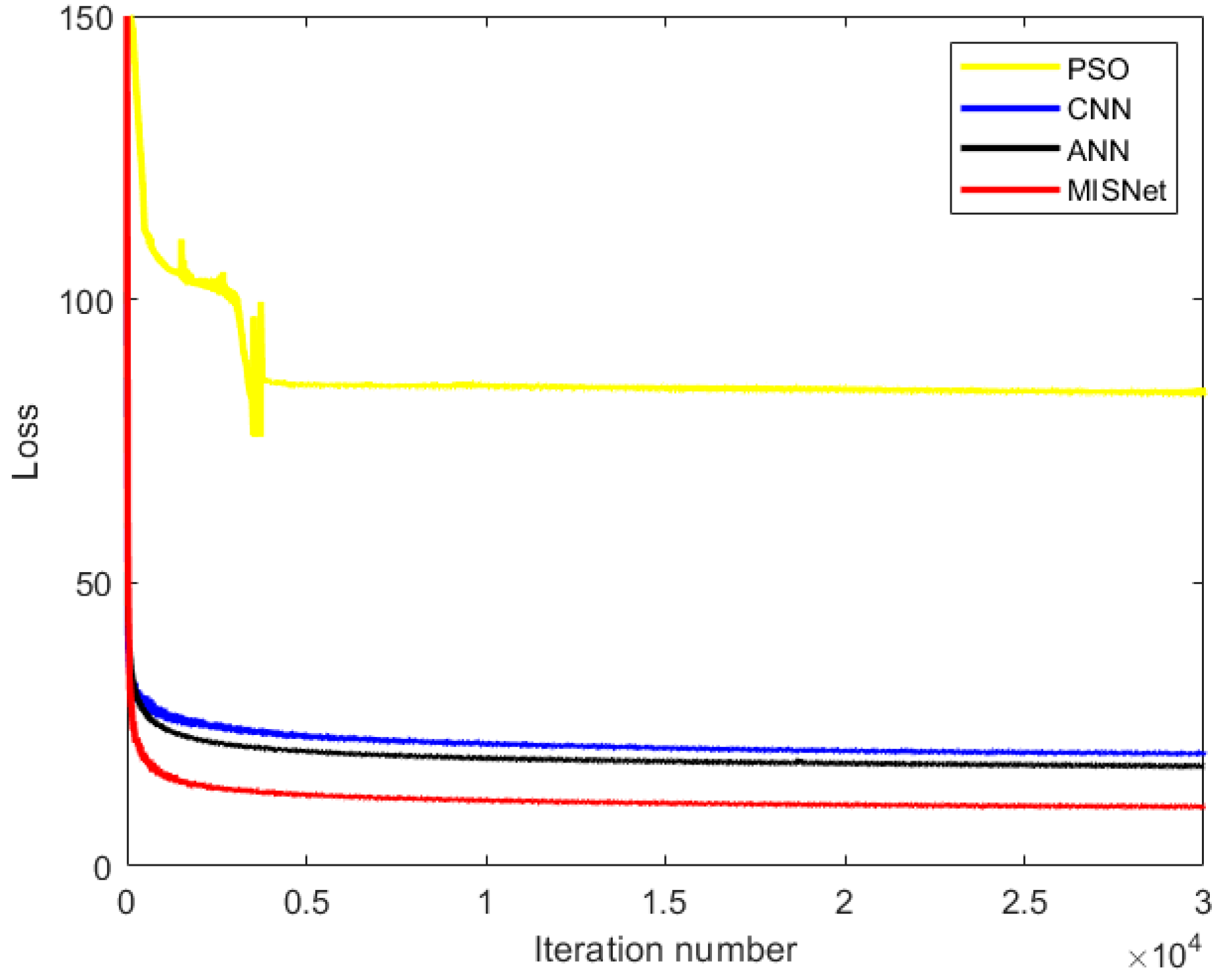 Figure 3 shows the training convergence curves of four algorithms: PSO, CNN, ANN, and MISNet.