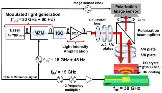 - Okada, R.; Mizuno, M.; Nagaoka, T.; Takehara, H.; Haruta, M.; Tashiro, H.; Ohta, J.; Sasagawa, K. Millimeter-Wave Band Electro-Optical Imaging System Using Polarization CMOS Image Sensor and Amplified Optical Local Oscillator Source. Sensors 2024, 24, 4138. [Google Scholar] [CrossRef] [PubMed]