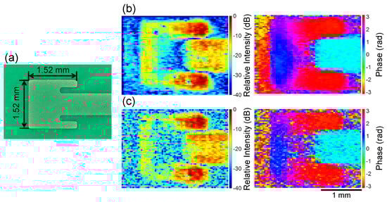 - Sasagawa, K.; Kanno, A.; Kawanishi, T.; Tsuchiya, M. Live electrooptic imaging system based on ultraparallel photonic heterodyne for microwave near-fields. IEEE Trans. Microw. Theory Tech. 2007, 55, 2782–2791. [Google Scholar] [CrossRef]
