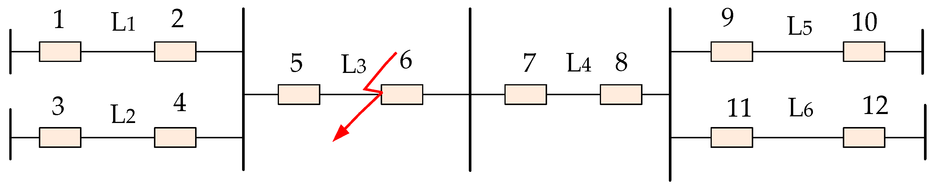 (2) Take the AB phase-to-phase short circuit of at position as an example. Since the basic probability takes the maximum value of the polarity of the differential charge quantity for three times (ab, bc, ca), losing any 1 or 2 differential current charge quantities will not affect the accurate judgment of . For the faulty line, consider the loss of more than 3 differential charge quantities under extreme environments; for the normal line, it is sufficient to consider the loss of any one differential current charge quantity.