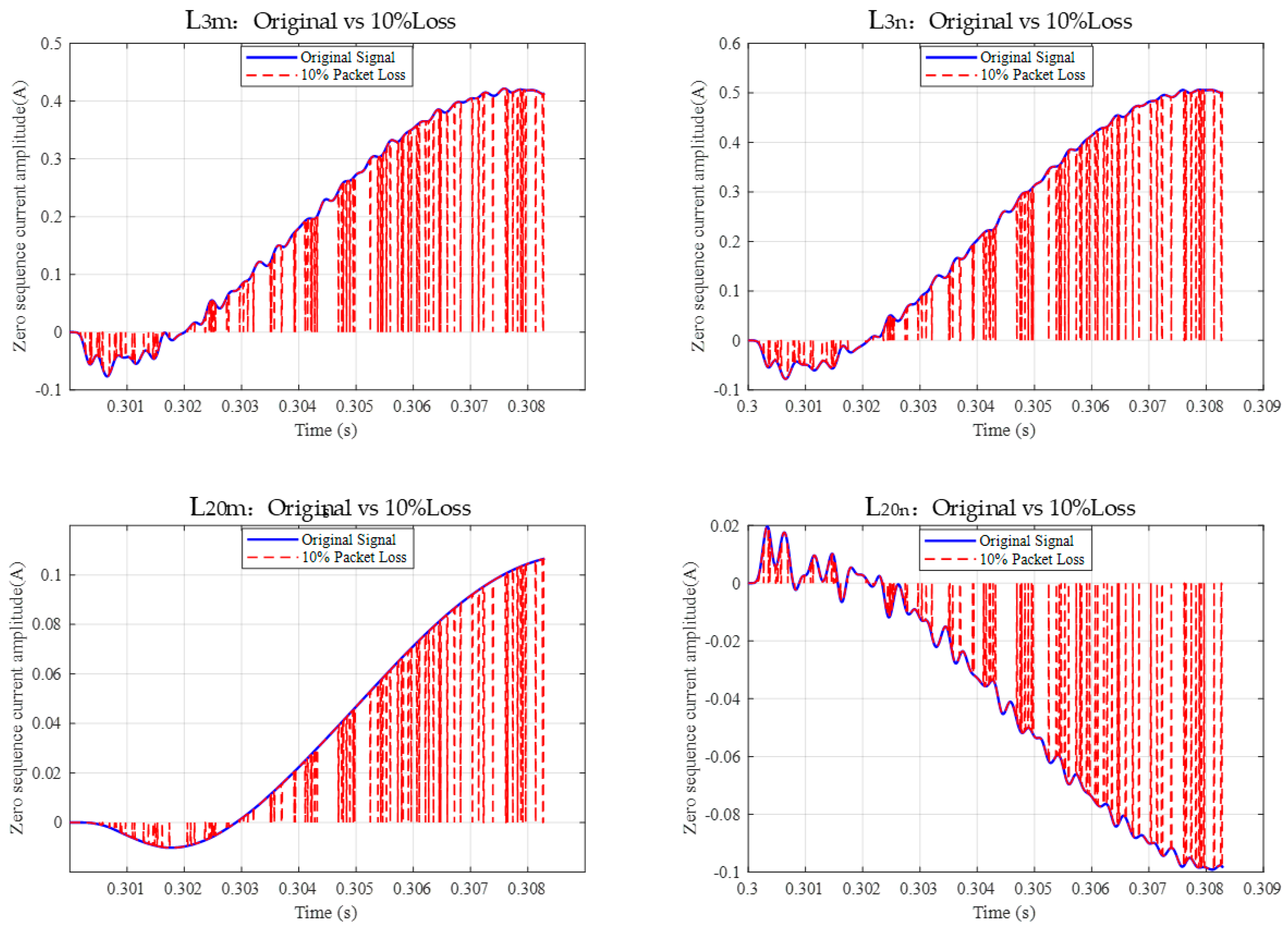 (1) Taking the phase A metallic ground fault of at position as an example, the fault-tolerant performance of protection under information loss is verified. The suspected faulty lines are and .