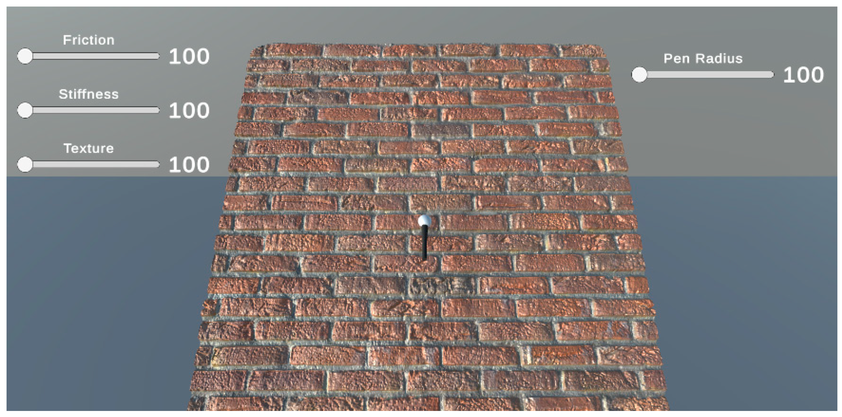 21] focused on the design of a lightweight and wearable haptic device for rendering stiffness in Augmented Reality (AR) environments. Their device, based on a passive tendon-locking mechanism, highlights stiffness as a critical parameter for realistic interaction one that our work also incorporates and systematically investigates. However, while their solution is optimized for AR interaction using a wearable device, our method aims at the flexibility of direct parameterization of multiple properties for Virtual Reality (VR) applications using a stylus device. Furthermore, the work of Rouhafzay and Cretu [