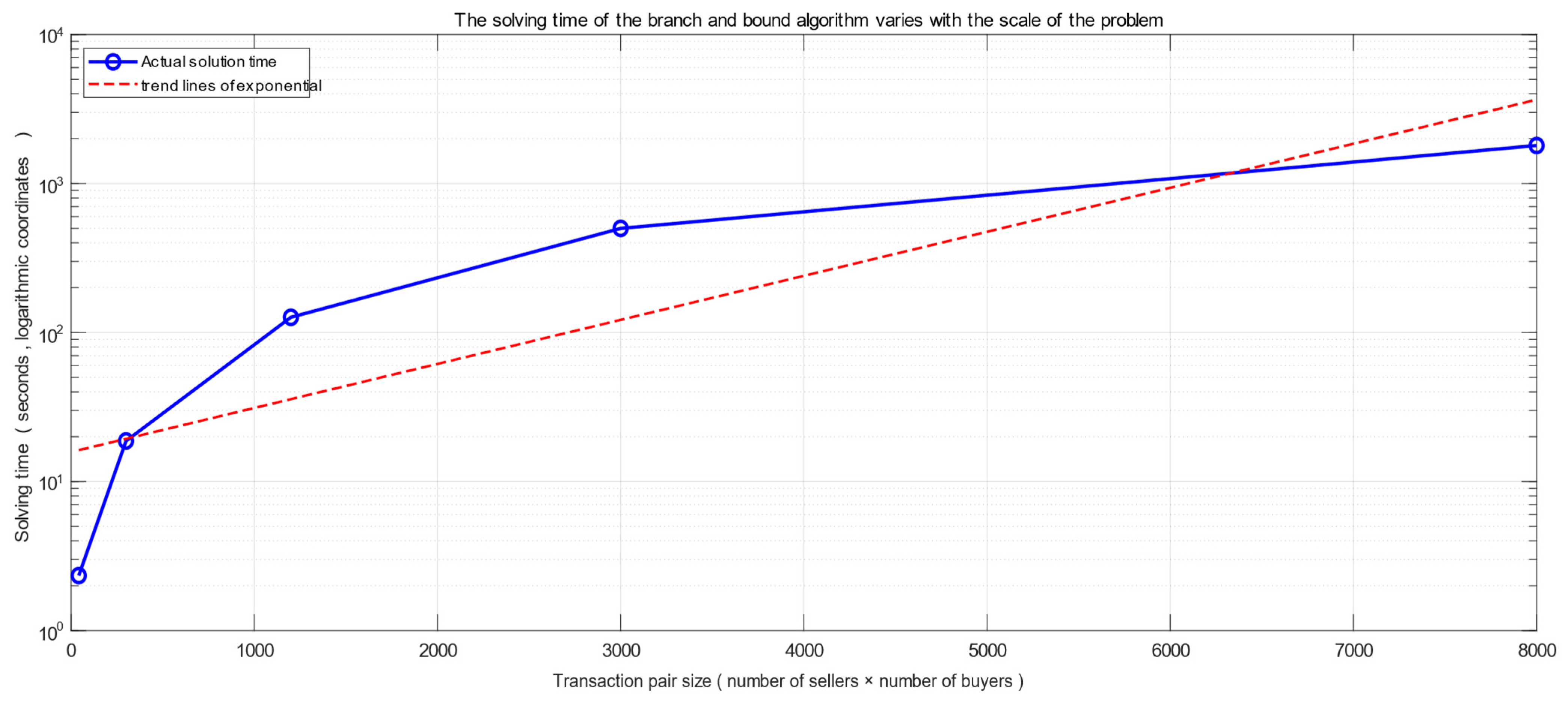 In order to analyze the solution speed of the branch and bound method in this paper, according to the actual situation, the number of buyers and sellers is expanded, and then the simulation analysis is carried out. The analysis results are shown in
