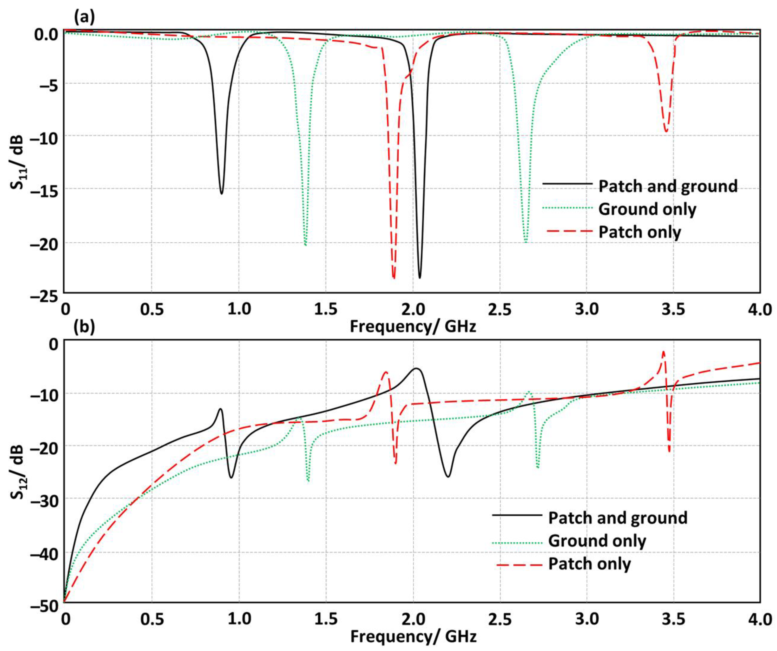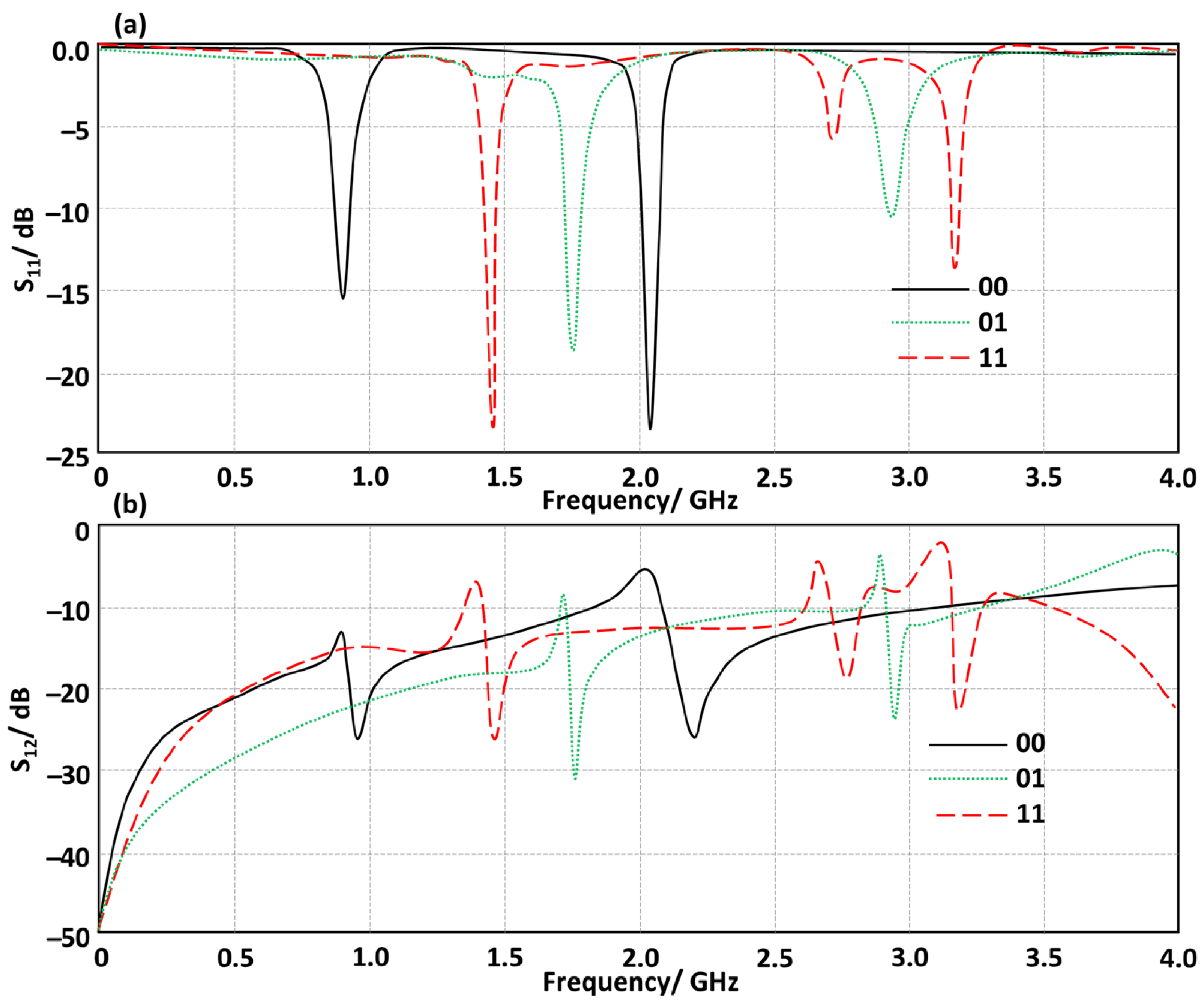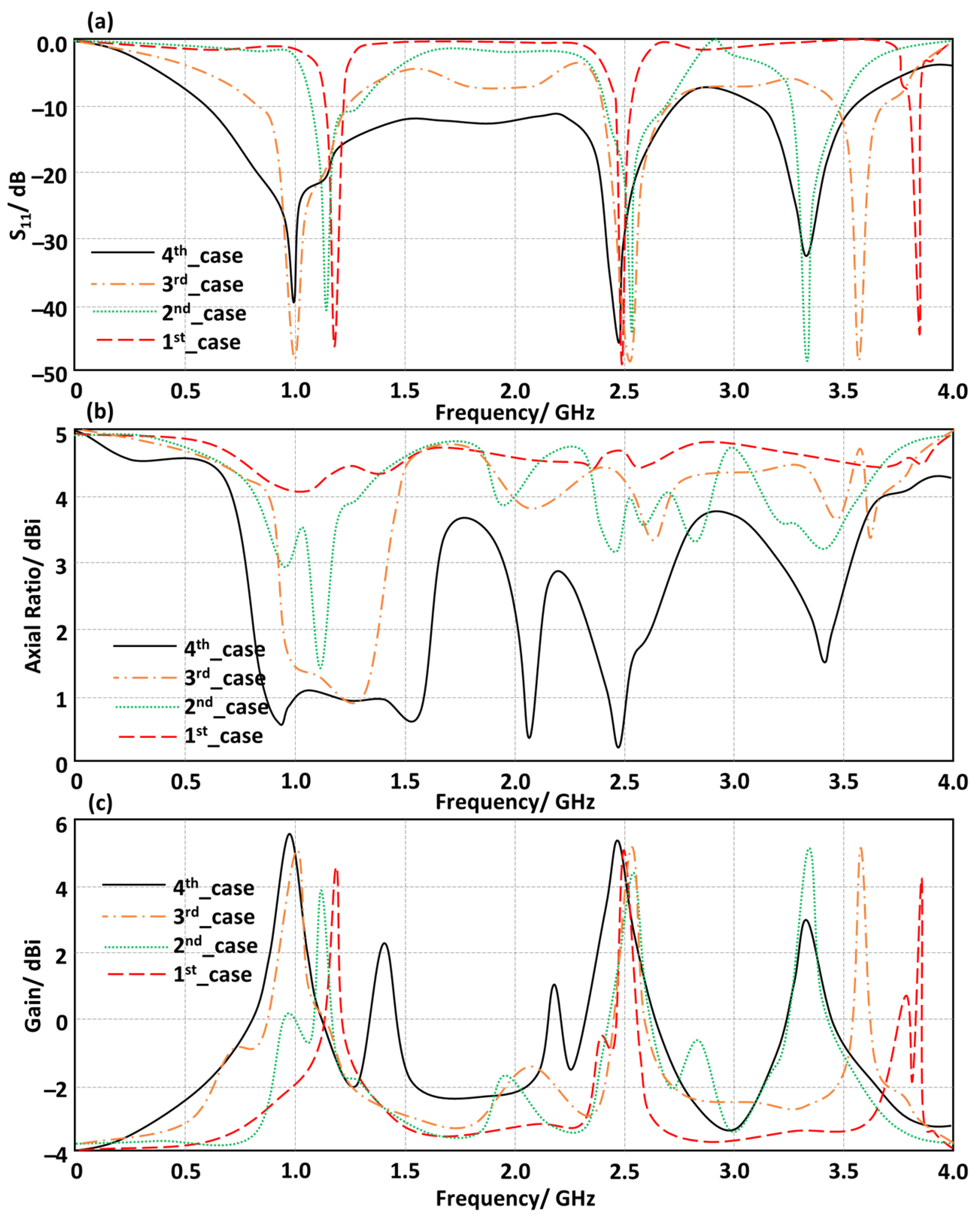 3.1. Antenna Performance Without RIS Inclusions
