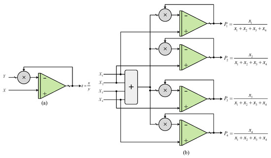 To implement the normalization unit, replace Y with the sum of the inputs, as shown in Figure 8b. The addition of multi-bit random variables can naturally expand the bit width, so the addition here will not cause calculation overflow. Meanwhile, the result of the addition can be shared by different dividers.