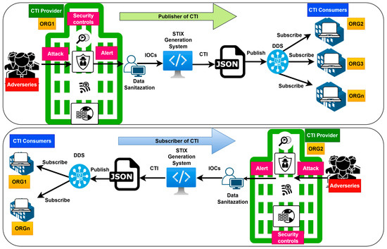 - Appala, S.; Cam-Winget, N.; McGrew, D.; Verma, J. An Actionable Threat Intelligence system using a Publish-Subscribe communications model. In Proceedings of the Workshop on Information Sharing and Collaborative Security, Denver, CO, USA, 12 October 2015; pp. 61–70. [Google Scholar] [CrossRef]