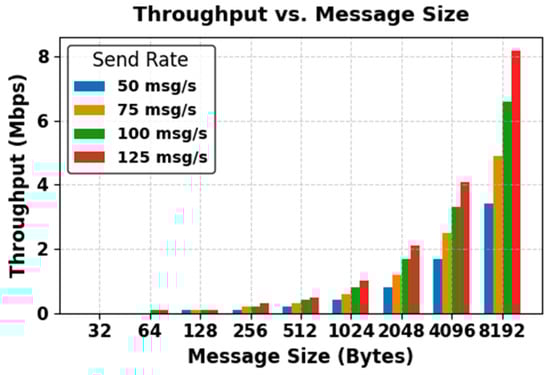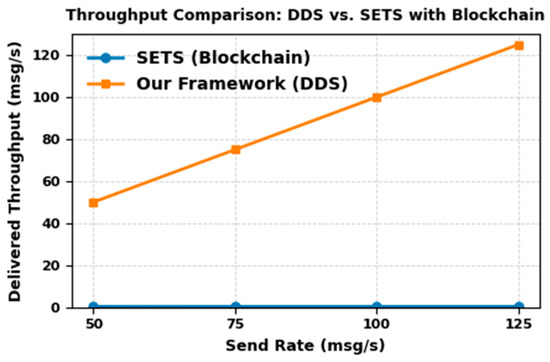 For example, the blockchain-based framework in [18] recorded 3.09 s latency, 0.32 msg/s throughput, and 96% success rate at a 100 msg/s send rate. Another blockchain based solution proposed by Hajizadeh et al. [17] achieved 49.7 msg/s throughput at 50 msg/s send rate and only 59.7 msg/s throughput at 100 msg/s send rate, with average latency of 10 s at 100 msg/s send rate and maximum latency rising from 14 s at 1000 transactions to nearly 36 s as the load increased.