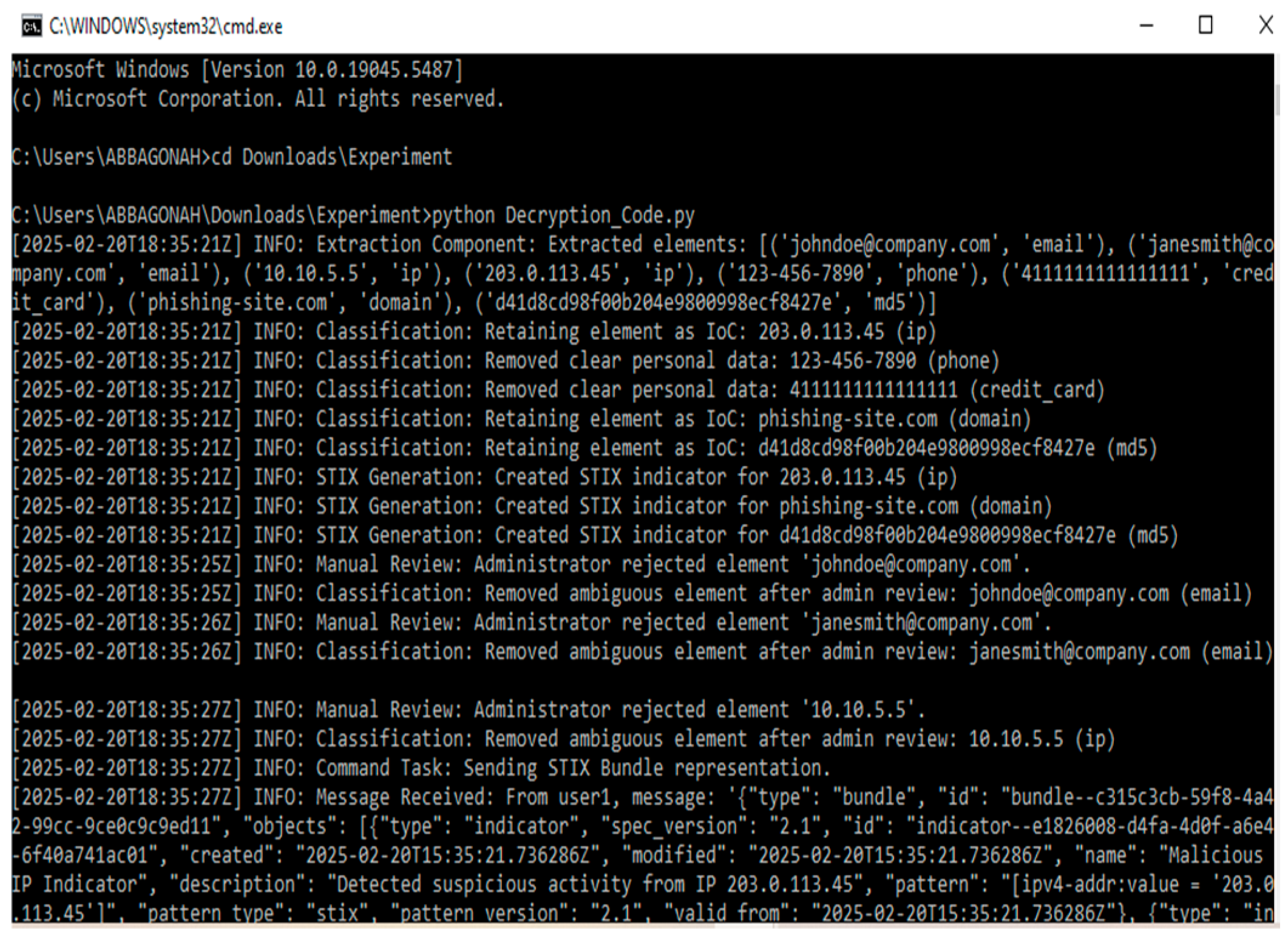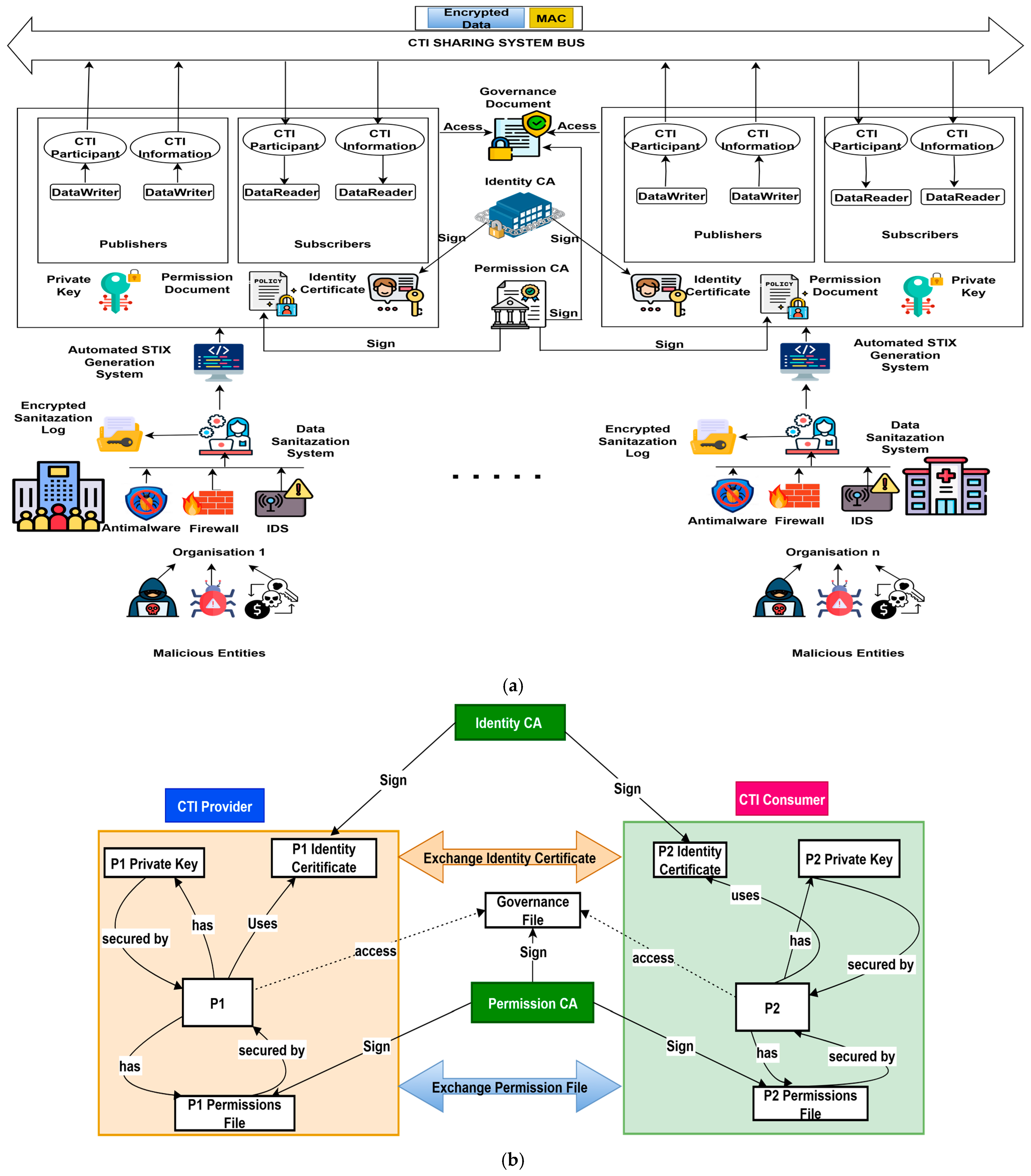 Although our experimental evaluation was limited to two physical machines to establish a controlled performance baseline, the proposed DDS-based CTI sharing framework is designed for deployment in larger, real-world environments. DDS natively supports large participant counts through its decentralized publish and subscribe model, and federation across organizational or geographic boundaries can be achieved using RTI Routing Service to bridge domains and subnets and RTI Cloud Discovery Service to enable discovery where multicast is unavailable; partitions further help scope and manage high fan out data flows. While we used Tkinter as a lightweight prototype interface for administrator review during testing, this was only to validate the sanitization workflow. In a production deployment, the review step would be implemented through scalable solutions such as a REST-based API or a web dashboard, which are better suited for enterprise-scale operation.