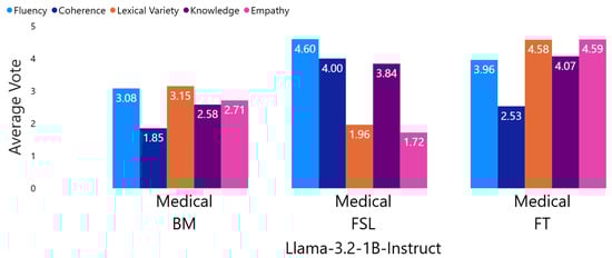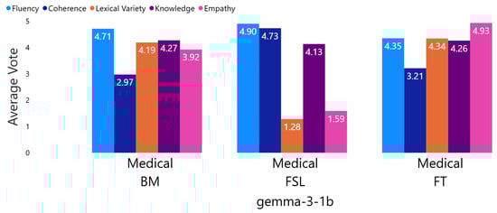 Model performance was assessed through a comprehensive, multi-layered evaluation strategy. Central to our approach is the adoption of the LLM-as-a-judge paradigm, specifically leveraging the G-Eval framework, which utilizes a state-of-the-art large language model (GPT-4o []) as an objective evaluator for the outputs generated by smaller models. This automated evaluation is inspired by established protocols such as SPIKES, widely used in medical communication, and is tailored to ensure a nuanced and contextually relevant assessment across five key dimensions: empathy, knowledge, coherence, fluency, and lexical variety. While the primary focus of the dataset and evaluation was the healthcare domain, this study also systematically explored the generalizability of the rephrasing capability by generating and evaluating empathetic responses in additional domains, including work, social, legal, and financial contexts. We validated the G-Eval results and ensured inter-method agreement by integrating a human annotation study. Expert annotators, trained in chatbot evaluation, assessed a representative sample of model outputs using a Likert scale across the same five dimensions; inter-annotator consistency was quantified via Fleiss’ kappa. Finally, to fully triangulate and quantitatively support our findings, we integrated traditional NLP similarity metrics BLEU [], ROUGE [], and BERTScore []. These metrics provided an essential, independent measure of the two core objectives of the task: style transfer (introducing empathetic language) and meaning preservation (maintaining semantic fidelity to the original response). This multi-pronged evaluation framework ensures both the robustness and the interpretability of our results.