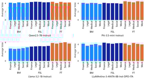 - Italian-Optimized Models: Two models were chosen for their specificity or optimization for the Italian language: Minerva-7B-instruct-v1.0 [] and LLaMAntino-3-ANITA-8B-Inst-DPO-ITA []. This selection aims to evaluate the performance of models with a linguistic predisposition tailored to the Italian context.