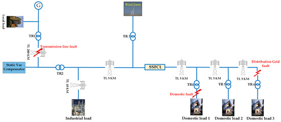 - Validating the effectiveness of the proposed SSFCL through detailed MATLAB/Simulink simulations under different fault locations, including transmission-level faults, distribution network faults, and domestic load faults.