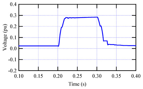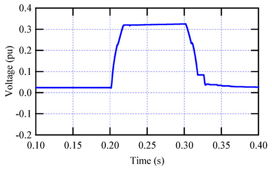 This fault scenario results in a significant voltage drop across the SSFCL between 0.2 and 0.3 s, as illustrated in Figure 12, indicating a severe condition for the limiter. To safeguard the limiter’s internal components during the sharp voltage drop, a ZnO surge arrester is employed in parallel with the bypass reactor to clamp the overvoltage and dissipate the excess energy when the voltage exceeds its threshold.