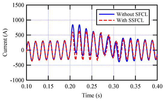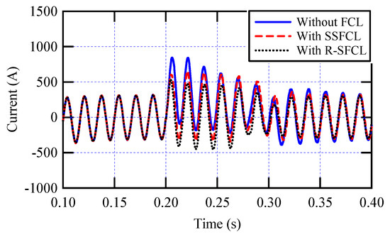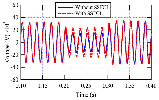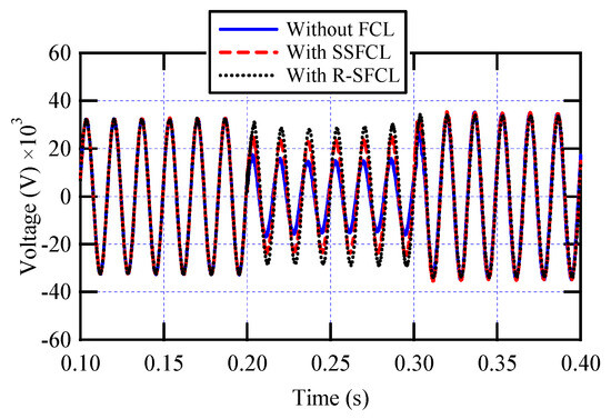 A comparative study was conducted to determine how well the R-SFCL and proposed SSFCL limit fault current and improve voltage during fault occurrence. The following are the main results, as shown in Figure 23: